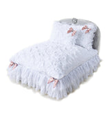 Add a touch of Elegance to your home with this exquisitely designed dog bed. This one of a kind glamorous style will make any pooch look and feel like a prince or princess. Guaranteed to take your breath away, this dog bed features removable down pillow for extra comfort and easy care, along with zippered bottom to completely remove for delicate washing.