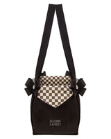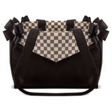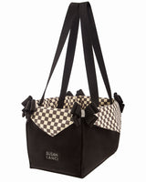 The classic Windsor Check print adds a bit of mod to this posh purse. The cute Nouveau Bows are dusted with Swarovski Silver Stardust and centered with rows of Swarovski Crystals to keep glamour and beauty at the forefront. Carry your dog in pure luxury & beauty that is sure to last. Made of genuine Ultrasuede fabric that is soft to the touch yet will maintain it's durability for years to come. Included is a custom matching plush pillow that keeps your dog cozy and nestled while on the go. Approximate dimensions are 8" wide X 8" high. The 12" long base has hidden support which is flexible and not too rigid. 14" high straps are the ideal height for carrying in comfort. Capacity is roughly 8 lbs. Included is a snap hook to attach to your dog's collar or harness. This item can be washed in cold water then hang to dry.