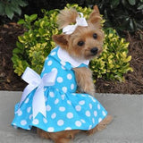 The New Blue Polka Dot Dress is right in step in the new colors of Spring. Great for everyday wear, light weight and fun design. Comes complete with matching leash and D-Ring.