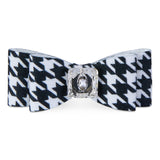 A must have! No one offers the selection of colors and designs that we have, and ones that will stand the test of time. Our bows come with a French-style barrette mechanism, and like all of our designs, are made from genuine upholstery grade Ultasuede® fabric that we import from Japan. Swarovski® crystal is used exclusively. Lastly, all of our hair bows are manufactured in the USA. Our bows are designed to coordinate with our harness and collar designs.
