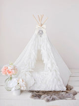 This extravagant luxury Lullaby Teepee handcrafted by Hello Doggie is adorned with delicate cascading lace and embellished with a crystal brooch for that finishing touch of elegance. The Lullaby Teepee is a perfect hideaway for a quiet afternoon nap. Complete with a removable stuffed pillow for extra comfort and tie-backs for opening or closing.