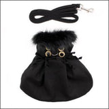 Wool Fur-Trimmed Dog Harness Coat - Black