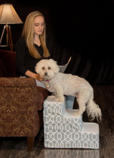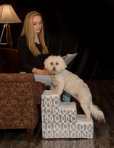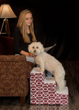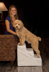The Trellis Print Designer 3-Step allows your dog the ability to get up to the bed with ease. The Trellis Print Designer 3-Step has rubber grippers on the bottom this keeps the step secure and in place while the pet is using the step. Assembly is easy just snap together no tools required and you pet will be using these stairs in minutes.